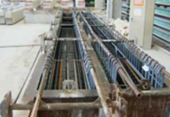 콘크리트 피복 확보를 위해 몰드와 철근망의 간격 유지