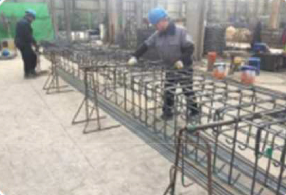 콘크리트 피복 확보를 위해 몰드와 철근망의 간격 유지